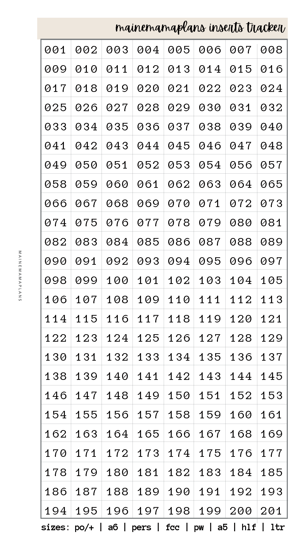 Keep track of the inserts you have from MaineMamaPlans with this exclusive tracker freebie - available with trim marks for printing on US Letter Sized Paper