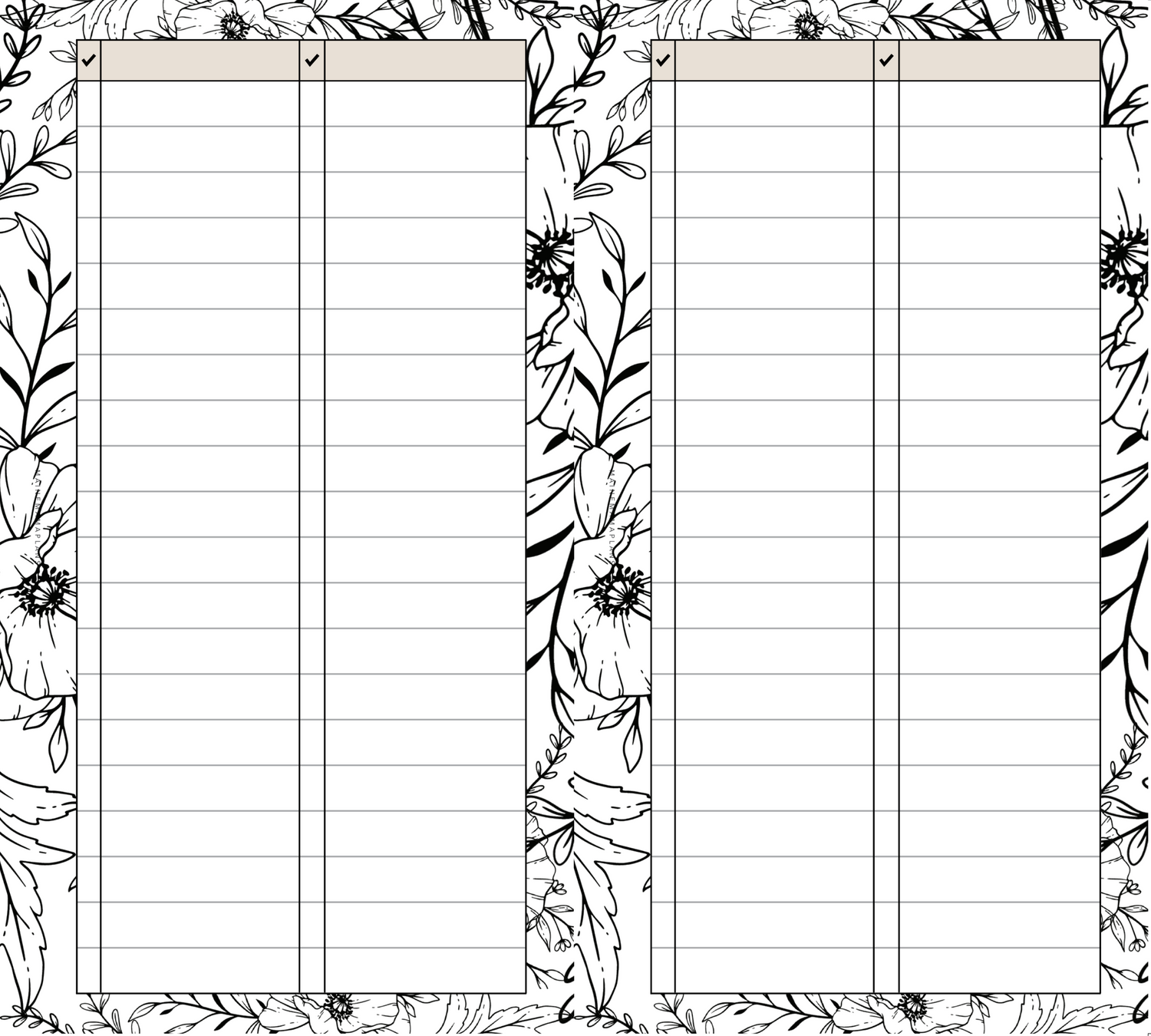 Floral Border Checklists with 3 Different Floral Patterns. This Design includes 2 Checklists per page - available with trim marks for printing on Precut Paper and without trim marks for printing on US Letter Sized Paper