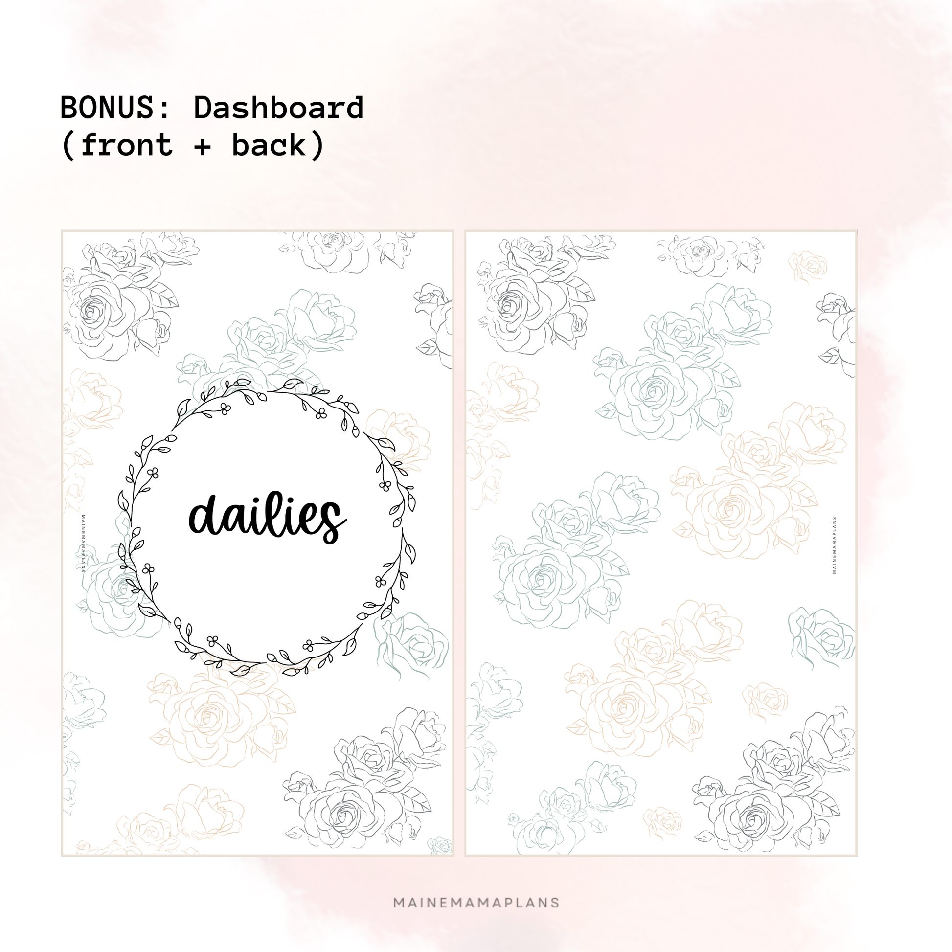 - Includes BONUS: 'Dailies' floral dashboard and Lined Notes pages