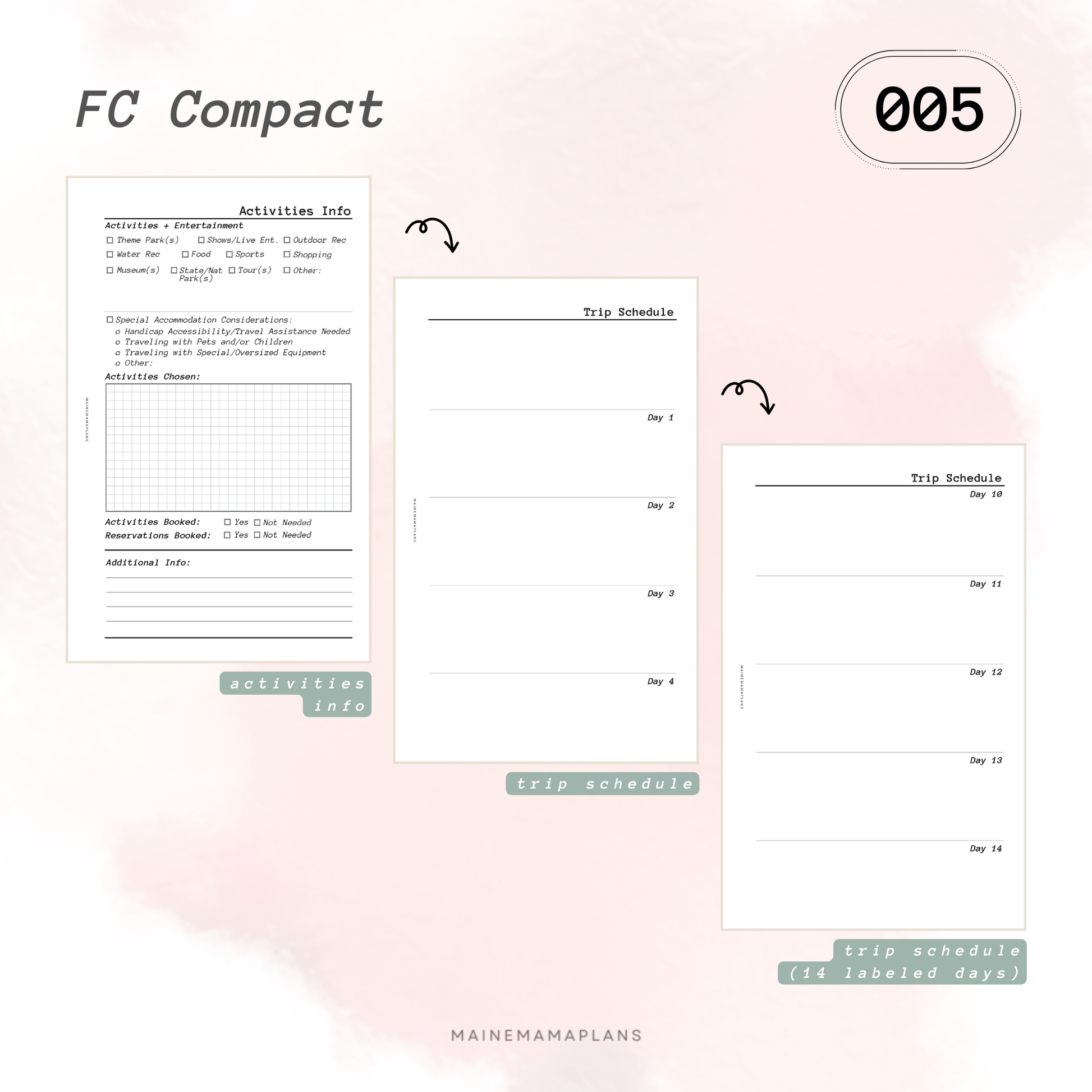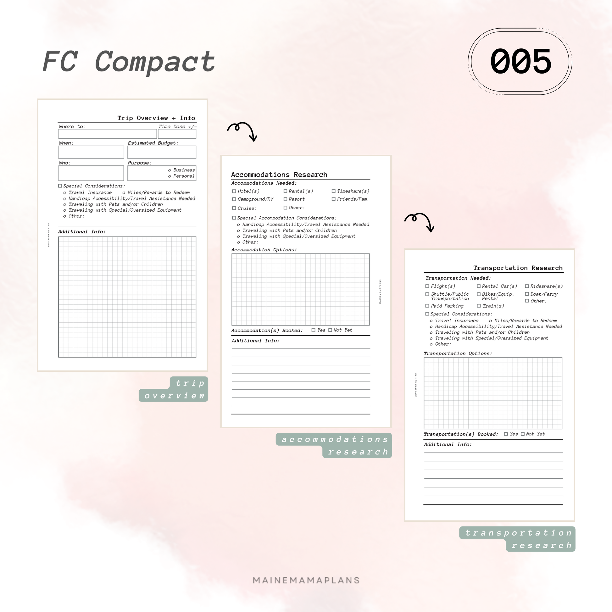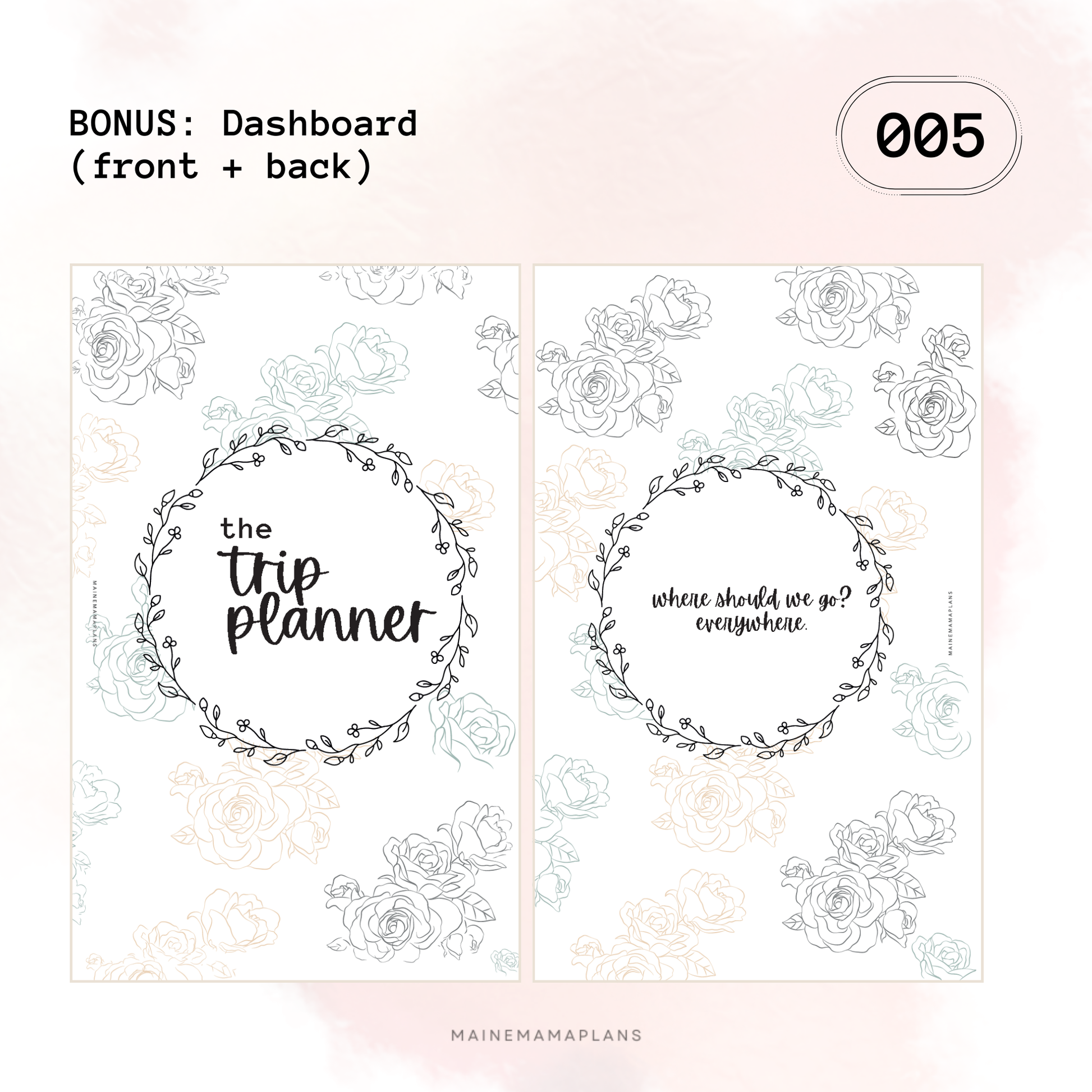 - Includes BONUS: 'the Trip Planner' floral dashboard, Lined, and Grid notes pages
