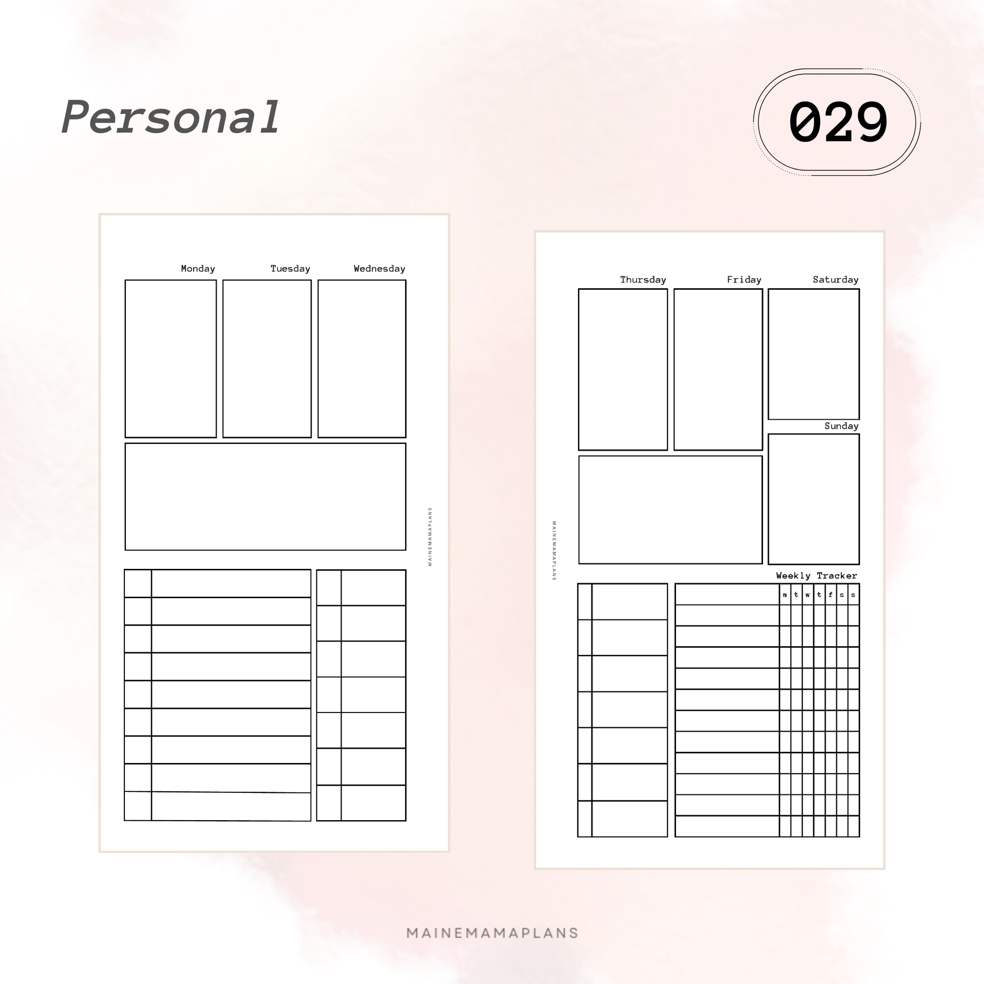029: Week on 2 Pages (Blank) with Weekly Tracker