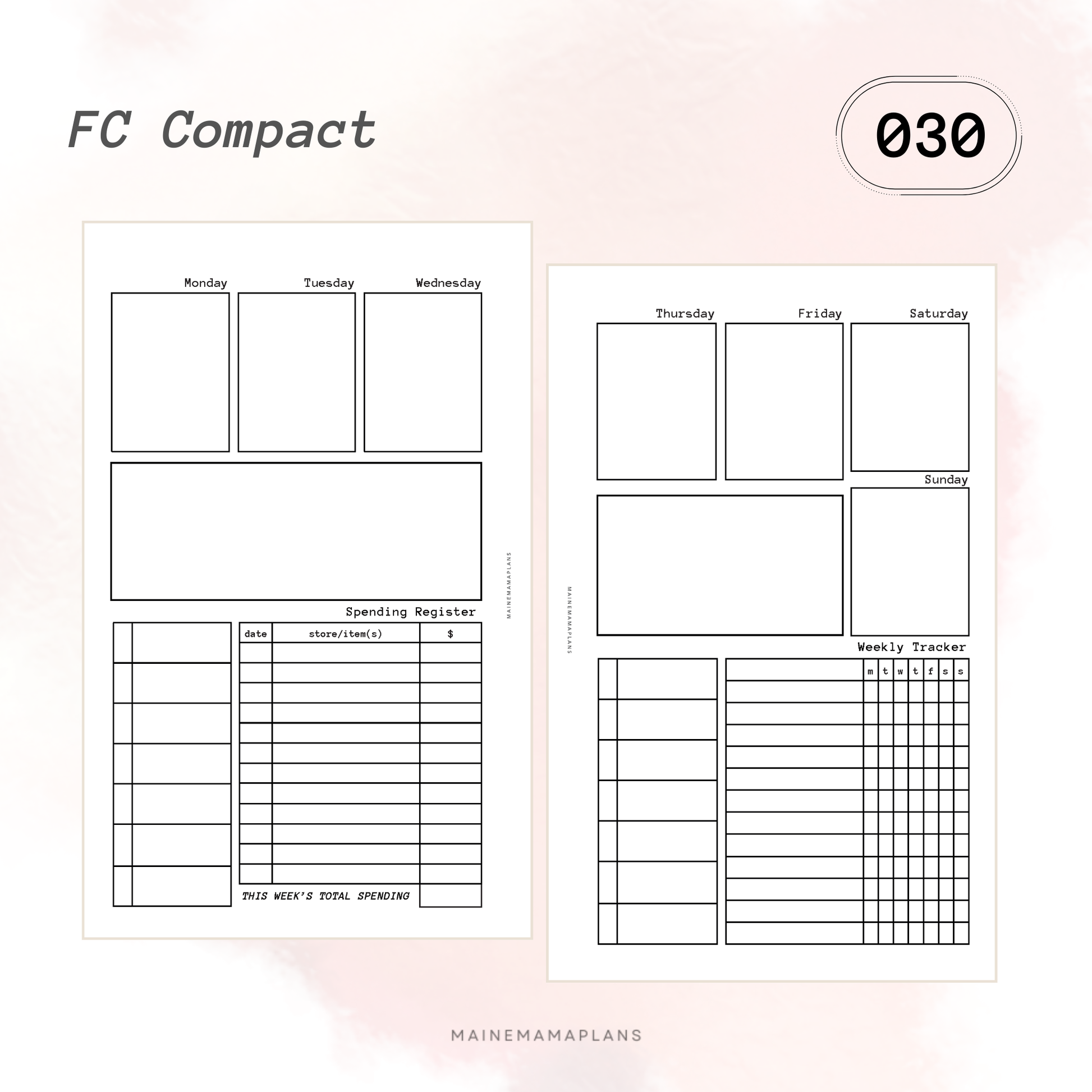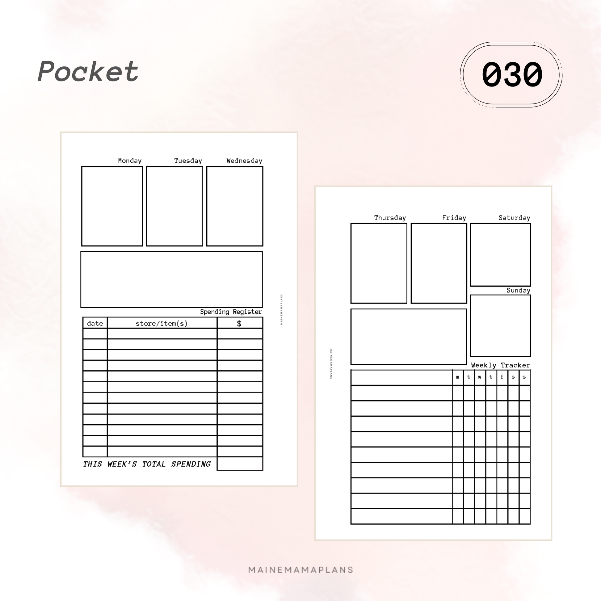 030: Week on 2 Pages (Blank) with Weekly AND Spending Trackers