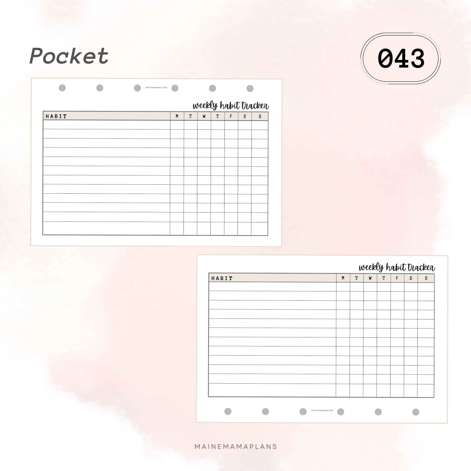 - Weekly habit tracking with 12 lined habit spaces available in either Sunday or Monday Start