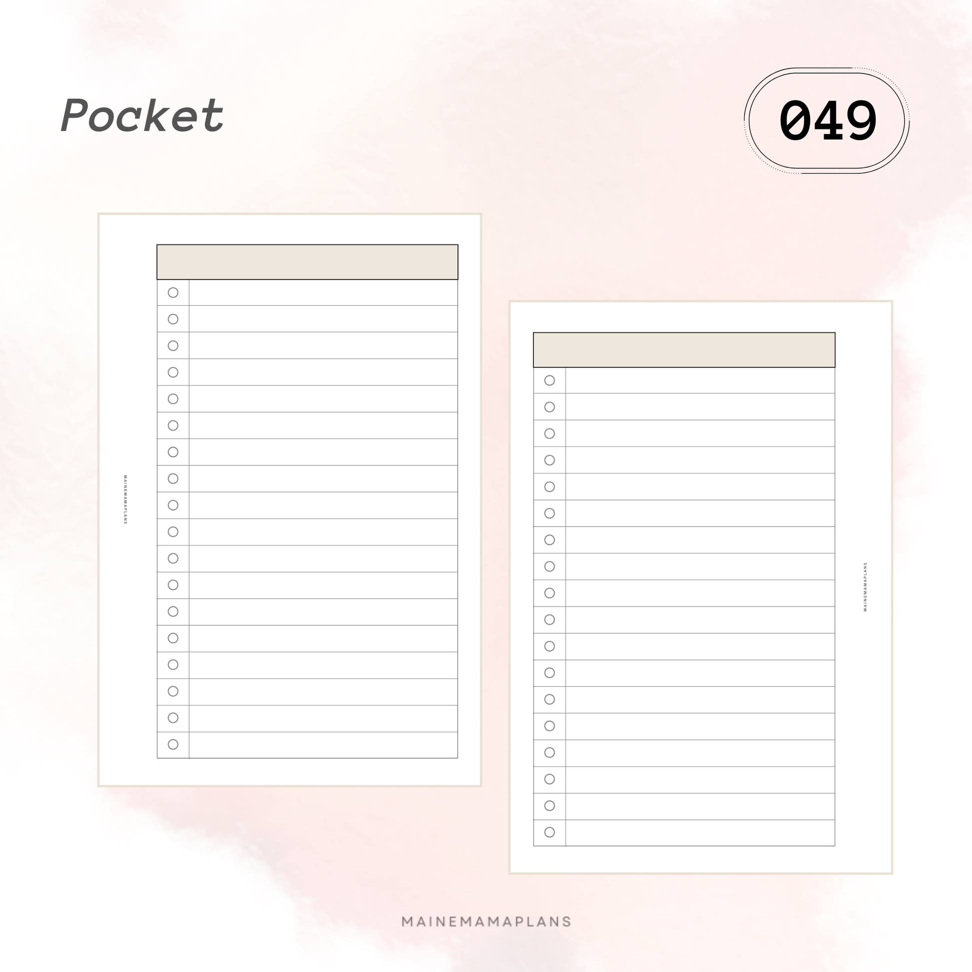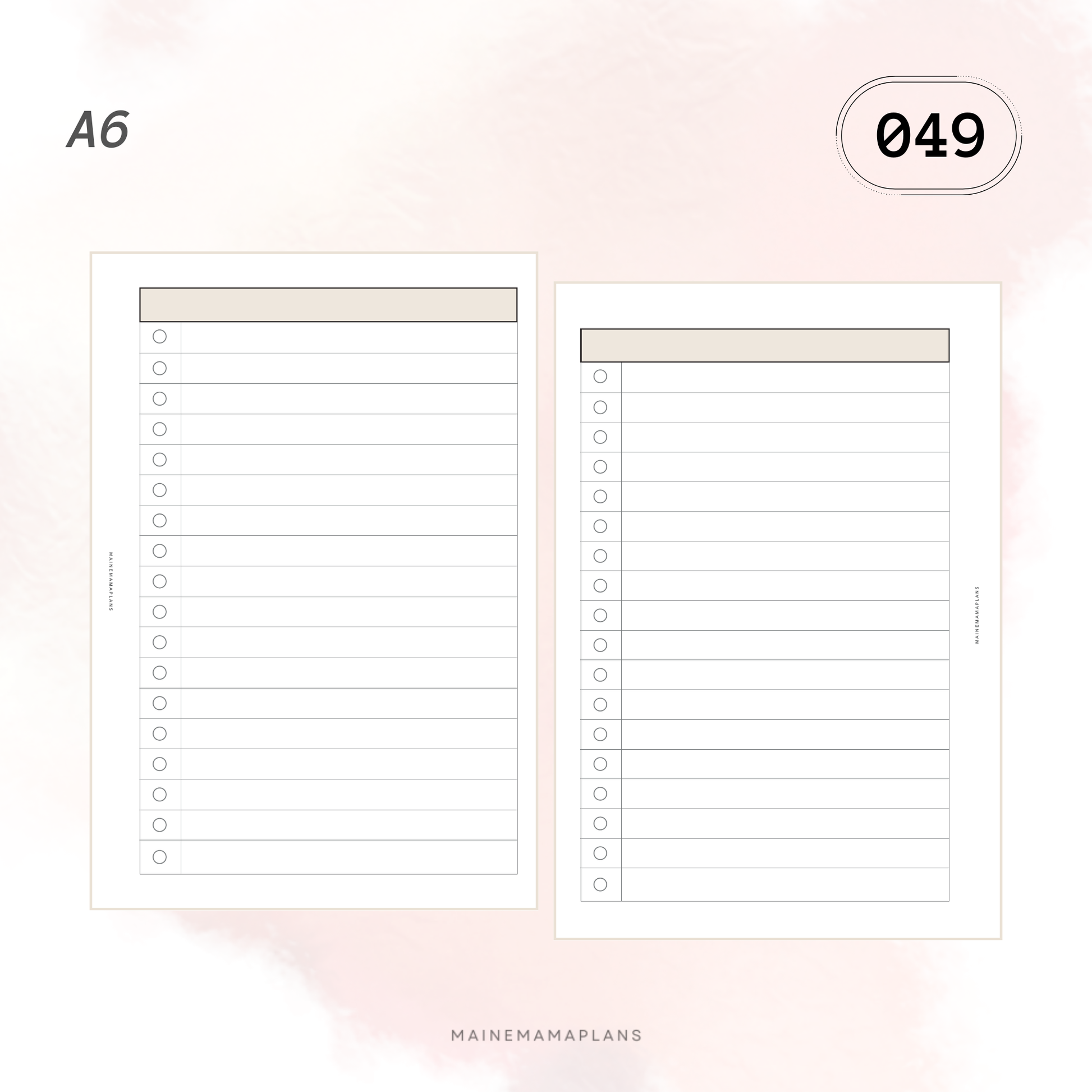 - Lined Bubble Checklist with either Tan or Blank Header Options
